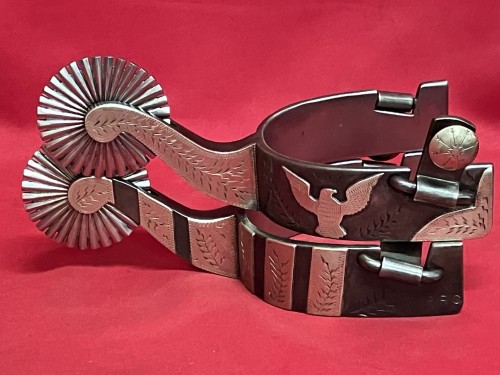 Handmade Bits & Spurs for Sale: PAT RAY CASTLEBERRY DBL MTD SPURS EAGLE SOLD #173480