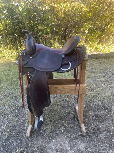 This is a practically brand new saddle. I only rode in it a handful of times and really liked, but unfortunately it didn’t work for my horse. It is a very comfortable, lightweight 15" trail saddle that works well for wider horses. It has a flex tree, which is a solid tree with a little more flex in the bars which can help relieve pressure points.