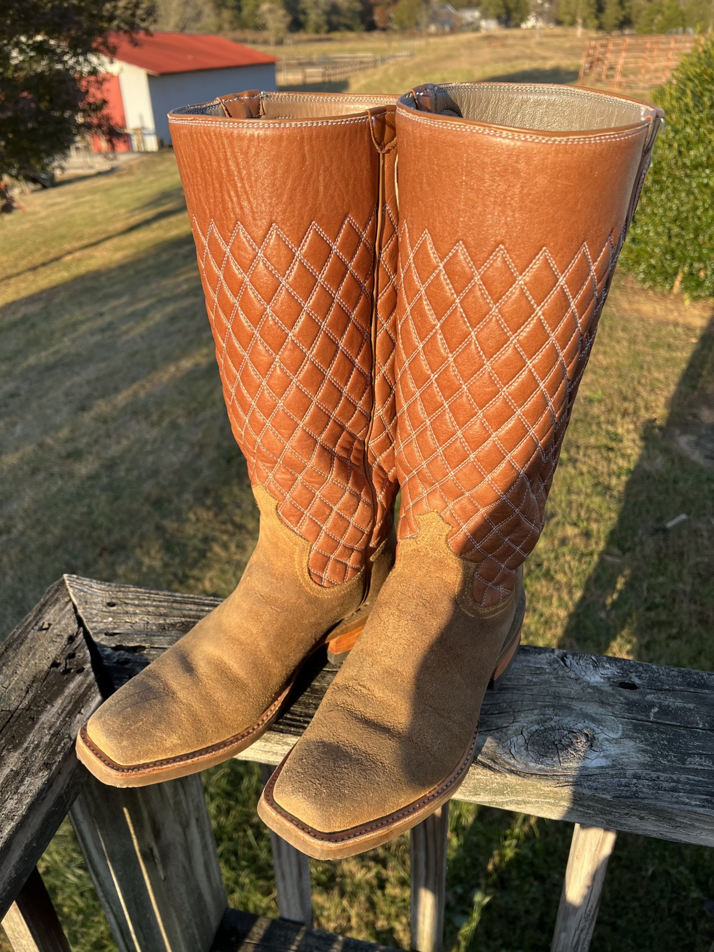 Bustamante waxed roughouts. 9 D. Tech soles. Stove pipes. Good spur ledge. Worn very little. Maybe 3 times. Fit like a true 9 D. $475 shipped to u n lower 48. Please text or call only. Thank u
