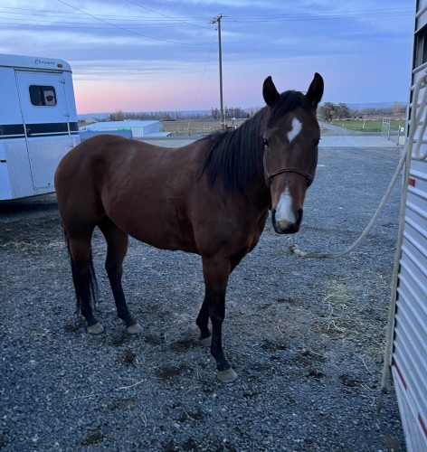 Mary Jane is a 3 year old grade mare. Unsure at this time if she can be registered. She’s a petite bay mare that is currently being ridden in a loping hack. She’s got a nice start and needs a job, would make a great breakaway prospect since she naturally has a nice stop. Got teeth done last week 9/15. She’s missing a couple front teeth, but vet says it isn’t any concern.