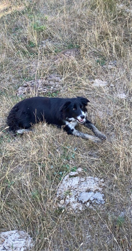 Female border collie. Very friendly and willing to work. Downs well and is started on both directions. Strong drive for livestock. Loves kids. Very good with other dogs. Registered. Videos available. Call or text.