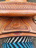 This is a very nice B98 910 M Bob’s Custom Reining Saddle. It has the BW tree with a gullet measurement of 8" tall x 6 1/2" wide. The tree is a 15.5" seat, a California seat which is the highest rising seat and is a finished seat size of 15". It has the #1 horn and a 3" Cheyenne cantle. The saddle has 16 1/2" fenders.