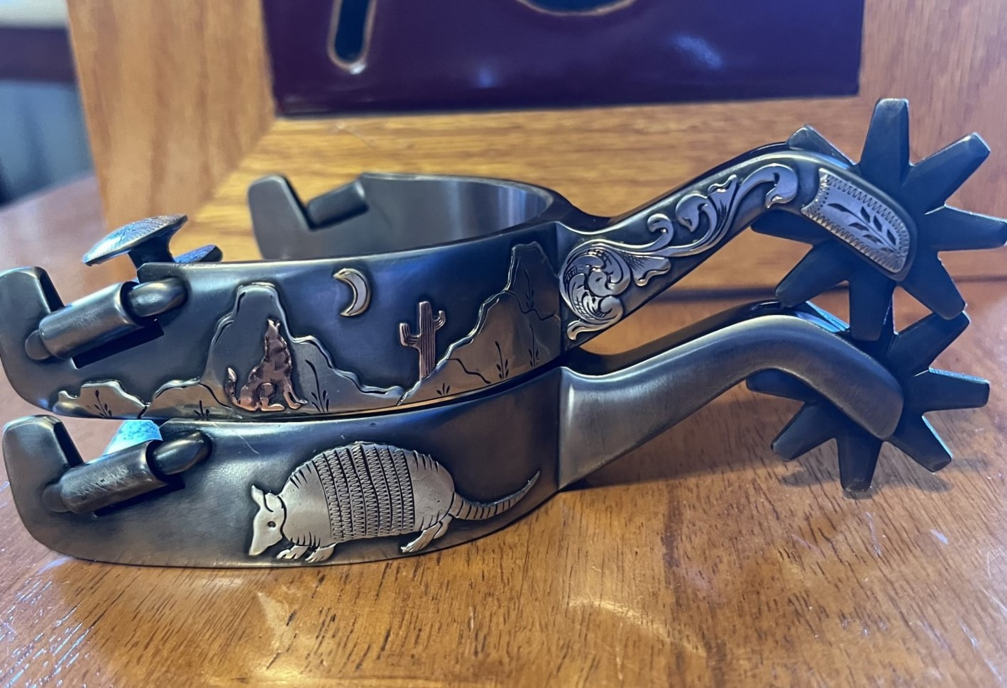 New John Jennings doubles. Desert scene on outside. Armadillo on inside. Pretty western here. Top k notch craftsmanship. $1,200 shipped n lower 48. Please text or call only. Thank u
