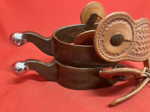 TOM BALDING SHERIDAN, WYO USA LOVE JOE 1995 marked spurs with very good straps and in unworn condition. 2" shanks, 1 1/4" bands, 3" heel openings. One of the most sought after makers going today. We pay shipping within the 48 states. We accept most forms of payment.