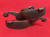 Great pair by the late Ray Anderson. I have never seen him mount the top of the shanks before. Great style with a great look, sterling mounted, unused condition. 3/4" rowels, 2 1/4" shanks, 1 1/4" bands, 3" heel openings that can be spread. He started making in the early 1970’s and only made a few over 1500 pair. Very collectible maker. We pay shipping within the 48 states and accept most forms of payment.