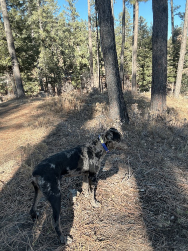 Camo, is a 10 month old intact male, he is been worked with very little but is very eager to please, his recall is very good, has a good down, hasn’t been on livestock yet, haven’t had any time to get to trying him out, both his parents work on cattle operation. I know this dog will work I just don’t have the time for him to reach his potential and I would prefer him to be put to work.