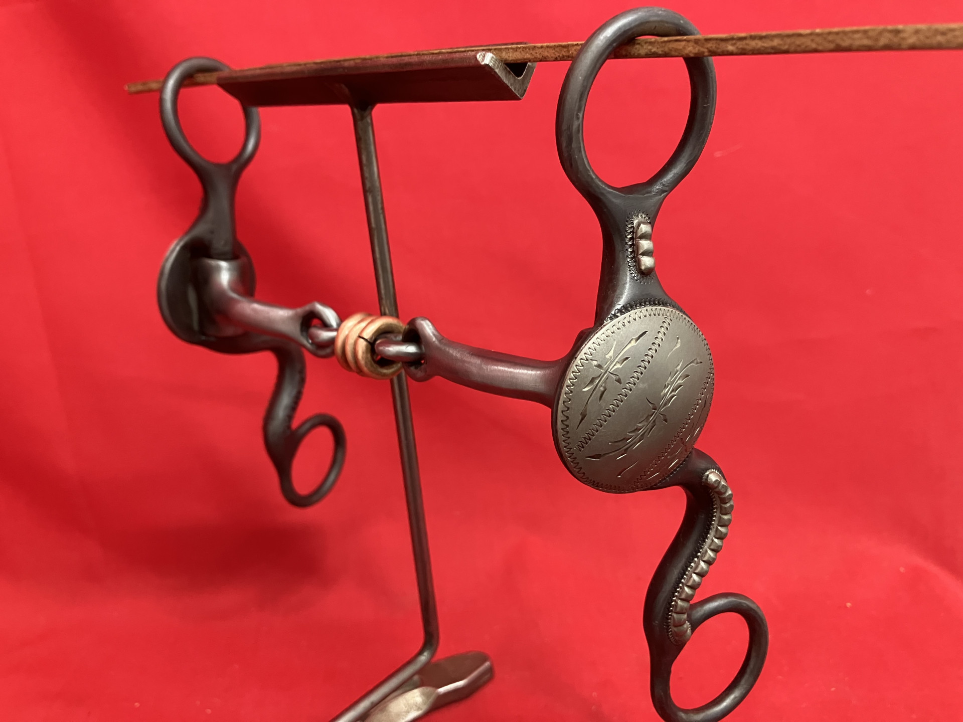 WIGGINS 52.DB.24 unused bit by award winning maker Gary Wiggins. Highly finished with 5" mouth, 1 5/8" hand engraved conchos, and 6 1/4" cheeks. Quality horseman’s tool. We pay shipping within the 48 states and accept most forms of payment.