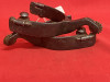 BAYERS 208 mounted Adolph Bayers spurs. 15/16" bands, 7/8" rowels, 2" shanks, 3 1/8" heel openings. Have pitting in the steel. Order shown in the Bayers book Vol. 1. We pay shipping within the 48 states and accept most forms of payment.