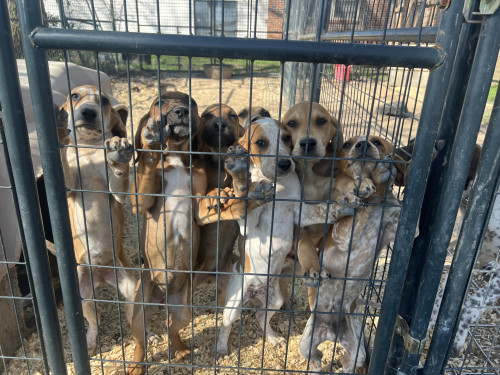 Mom is a Black Mouth Cur and dad is a blue tick. Both parents are working bay dogs used for hunting wild hogs.