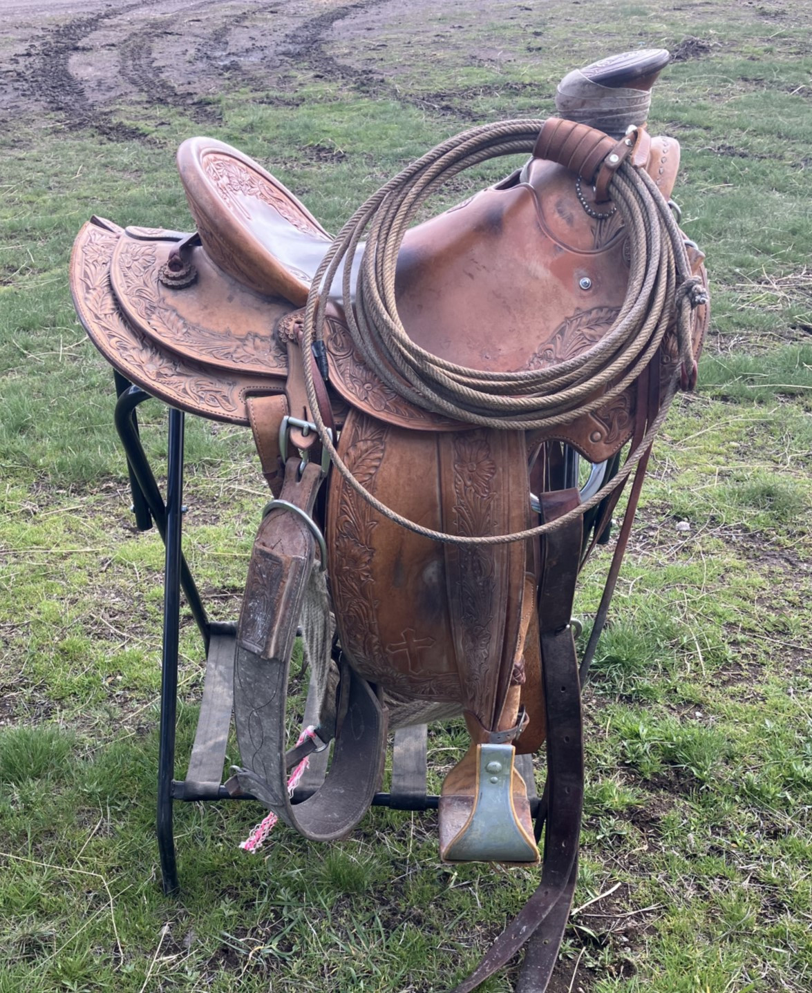 Well cared for 16in Gomersall. Saddle fits horses exceptionally well and has a very comfortable seat. Stirrups and front cinch not included.