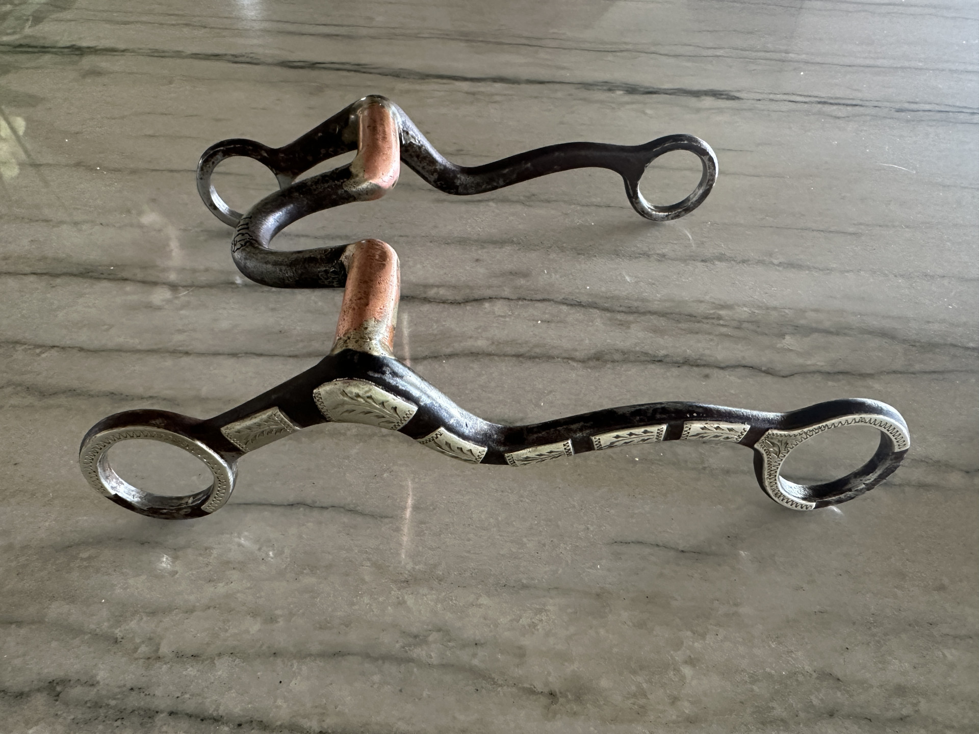 Ron Tollison Custom made bit. My cousin had this made about 20 years ago. Bit is in good shape. Bit marked 111 with the shamrock T. Copper brazed on bars to sweeten the bit. Will ship for free anywhere in the lower 48.