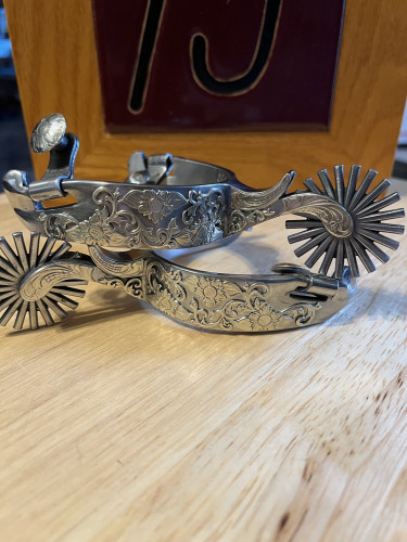 Nice set of spurs handmade by John Stoddard. Mounted w silver scroll and feathers. . Wellmade, neat and in new condition. $600 shipped n lower 48. Please text or call only. Thank u