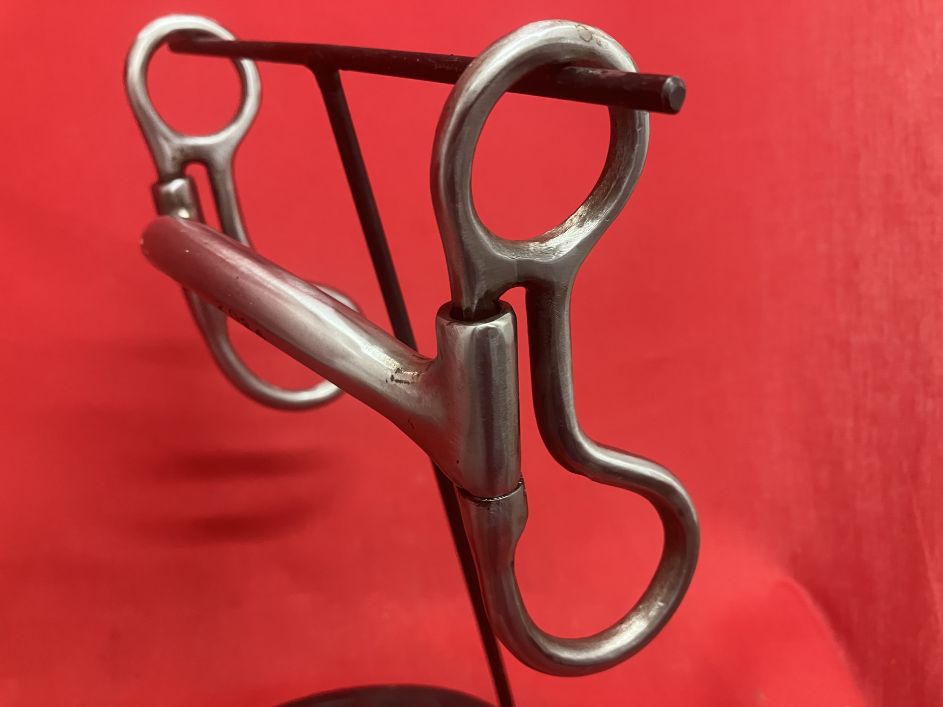 DAN 2024 marked and made colt style bit with a smaller mouth diameter than the Israel’s. It is tubing as John’s are. 5" mouth and 4 5/8" cheeks. Made by Dan Wisely of Texas. Has good weight to it. We pay shipping within the 48 states. We accept most forms of payment.