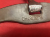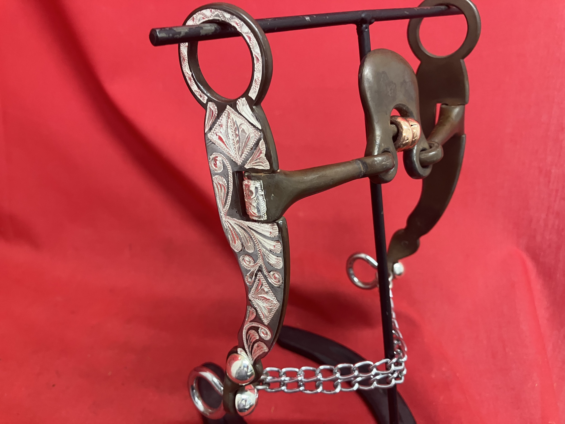CHARLIE’S marked bit with 5 1/16" floating spoon mouth with copper inlays and 6" cheeks. Pure silver inlaid and a handy using style. We pay shipping within the 48 states. We accept most forms of payment.