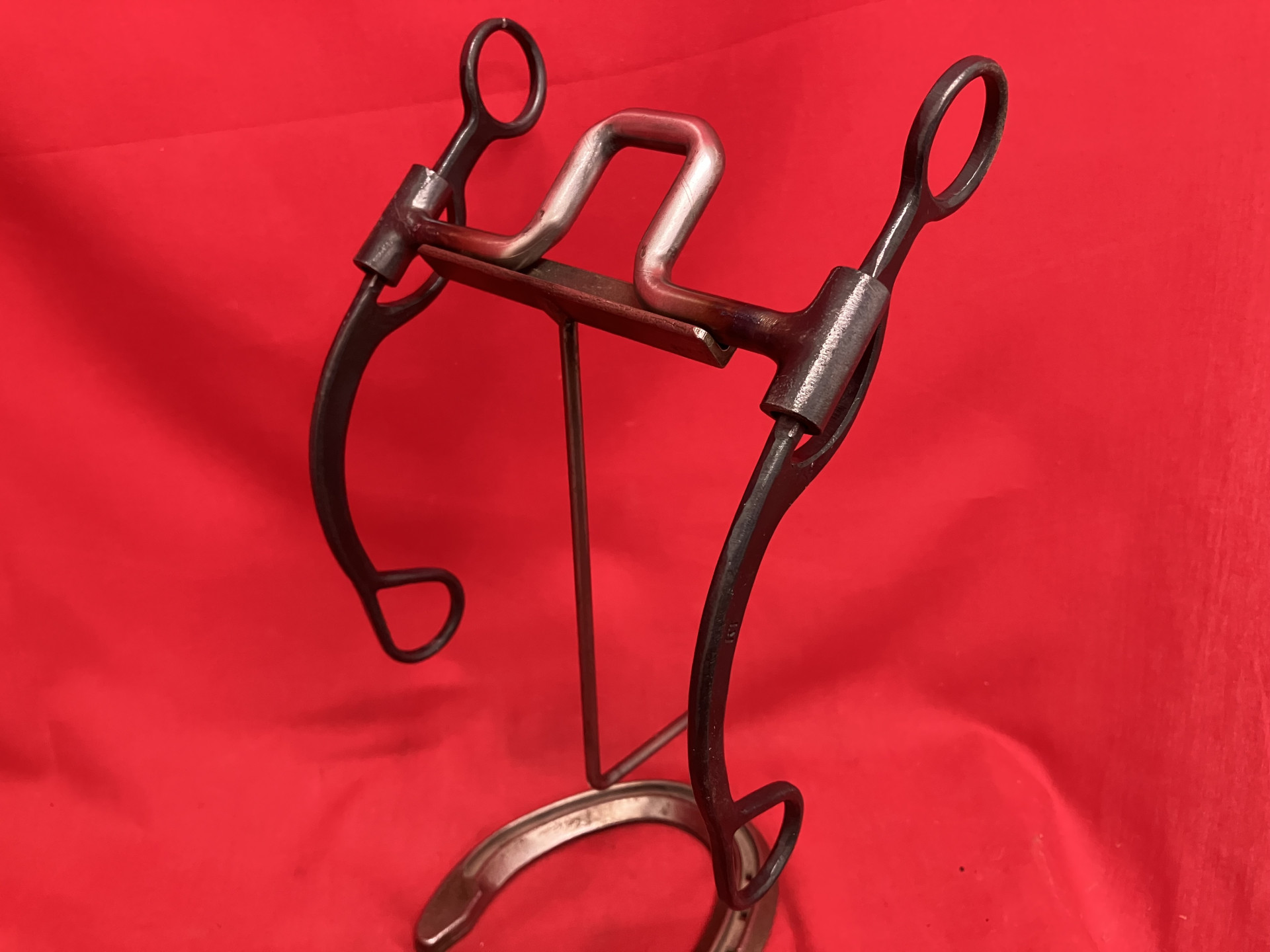 RT marked bit by Rod Teuscher of Gainesville, Tx. In unused condition with 7 1/2" cheeks and 5" mouth. People are liking these. Rod makes bits for some of the top horsemen in the country. Affordable quality horseman’s tool. We pay shipping within the 48 states and accept most forms of payment.