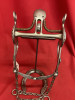 GARCIA SADDLERY SALINAS, CALIF. marked bit in sure’nuff good condition with rein chains, 3 3/4" spade, 5" mouth, 7" cheeks. Made with some play in the cheeks. Not a style one sees that often. This is a good one. Thinking that it was made Ken Ramoni while he was employed by them. Good collector bit and a good one to use. We pay shipping within the 48 states and accept most forms of payment.