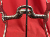 Vintage FLEMING marked bit with 7 1/8" grazing cheeks and 5" frog mouth with copper inlays. Sterling overlaid engraved cheeks. Great bit with good condition. We pay shipping within the 48 states. We accept most forms of payment.