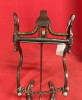 Early Grijalva bit with their EG* mark. Probably 1950’s. In good condition. 8 1/4" cheeks and 4 7/8" mouth. It appears to me that the mouth piece has been changed. I have no idea whose mouth piece this is. Good job and the spade lays back a ways. 3.5" spade. We pay shipping within the 48 states. We accept most forms of payment.