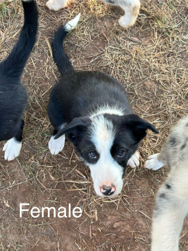 1 female and 2 males left. Female is black and white, 1 black and white male (with the white ear)and 1 Merle male. Pups have had their second round of shots/deworming and health checks have been done. They will have their final round of puppy shots next week. They have been socialized with people of all ages and other dogs.These will make great working dogs. Both parents on site. Dad is a phenomenal finished dog with a ton of grit. Mom is a started dog with plenty of grit. These pups have lots of potential don’t miss out on them.