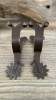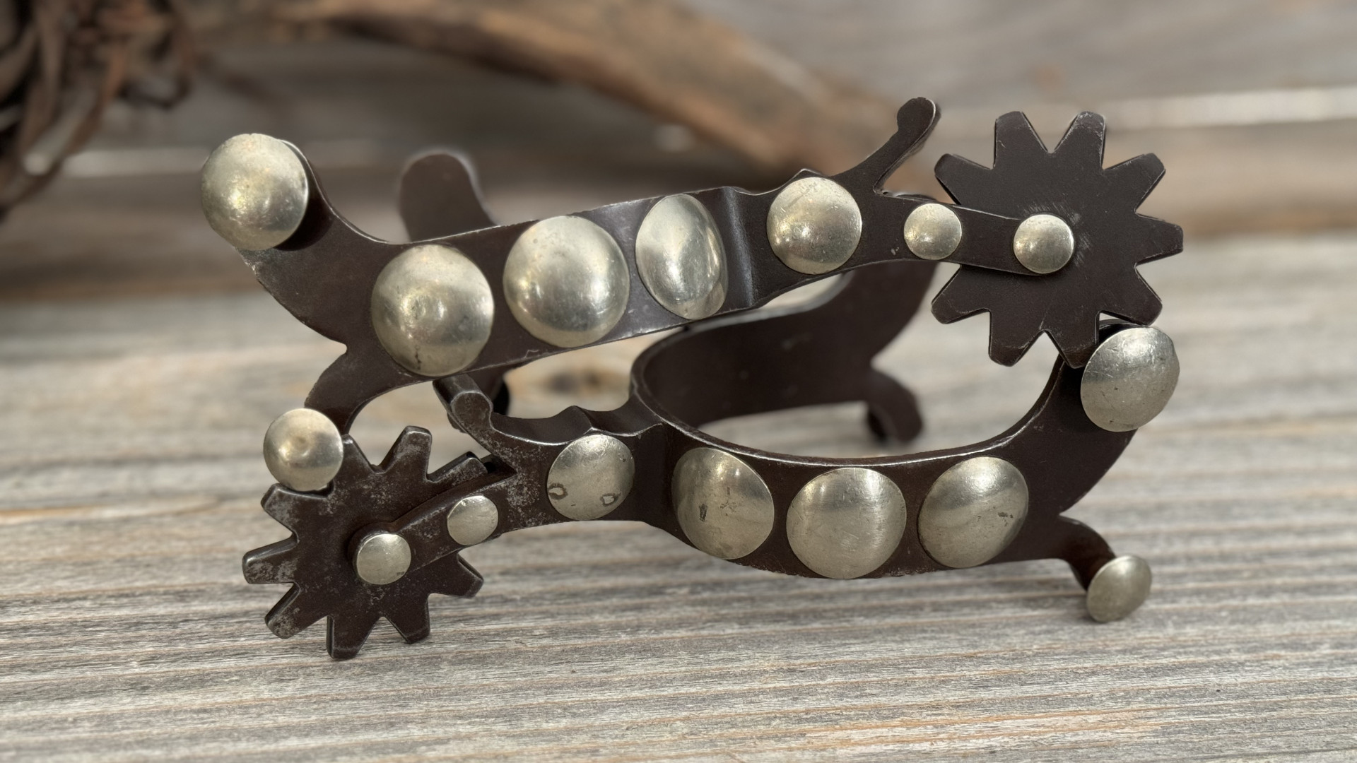 Looking to sell an early pair of Gene Rogers "Cheyenne Special" style spurs. Marked "ROGERS 26", these feature split heel bands, chap guards and a 8 button design. Gene is no longer making spurs, so these are a RARE find as they are in like new condition!