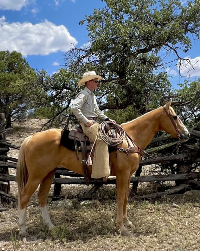 Stoney is a 15 hand golden palomino gelding. He is 10 years old. Stoney is a special horse, gentle for any level of rider. He has a nice neck rein, will drag his tail when he stops and side passes. He knows his leads. Stoney is comfortable to ride with a nice smooth trot and canter. You can ride him in a hackamore. He is a lot of fun to ride. He will go all day when asked and doesn’t easily spook. He has been used all around the ranch. You can open gates on him or do just about anything else you want on Stoney. He has been used for trail riding extensively in the National Forest. Guests like to take him shed hunting in some of NM roughest terrain. He has been packed on. He will cross water and downfall. Stoney is a quiet horse who knows his job and enjoys it. He is easy to catch and a gentleman on the ground. He will stand quietly tied and is easy to load and haul. Stoney is a very sweet horse with no health issues. With his looks, attitude and ability, he will make anyone an excellent horse. Stoney is $12,500 Call 575-517 six nine zero six
