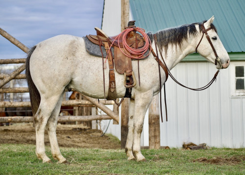 Horses For Bid at Auction: DOMS CHUBBY OLE – 2016 AQHA Gray Gelding x Roan Bar Chubby x Roan Jack Bar out of GR Dominica x Eddies Badger Skip! SOLD #184000