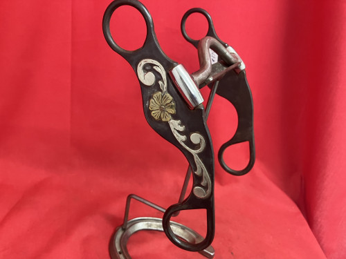 Harvey Moore of Arkansas City, Kansas made bit in unused conditiion. It is marked MK, as he marks all of his bts. He makes a lot of bits for working cowboys. 7 3/8" cheeks and 5" mouth. We pay shipping within the 48 states. We accept most forms of payment.