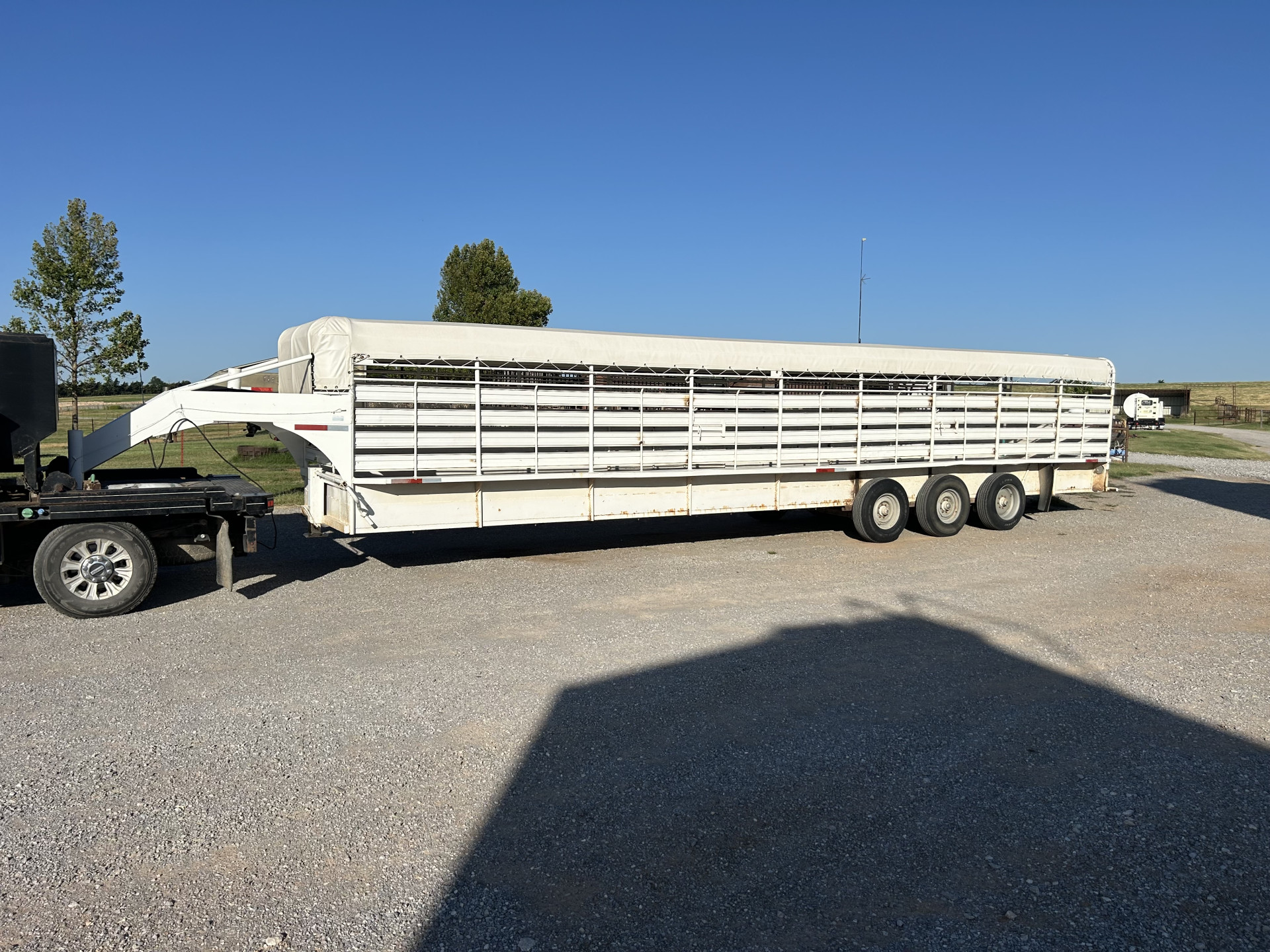 36 ft long x 6 ft wide x 6 ft tall stock trailer. Has 2 cut gates,