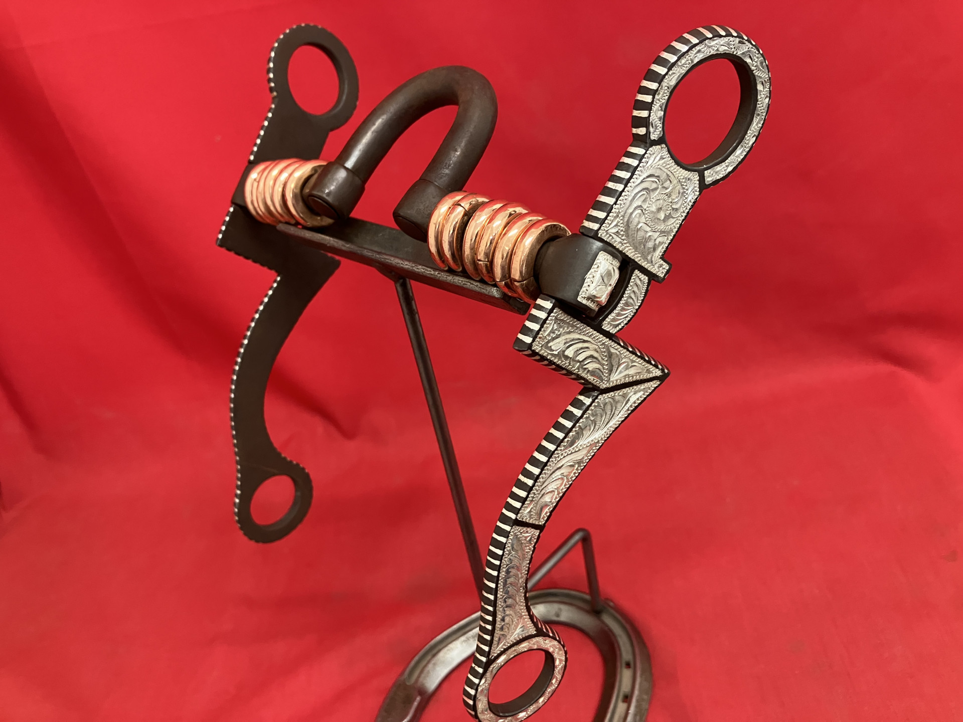 CHARLIE’S marked 7 cheek with correction mouth in unused condition. Copper rollers on the bars, 5" mouth, 6 7/8" cheeks. Inlaid with pure silver. Popular mouth combined with very popular style of cheeks. We pay shipping within the 48 states. We accept most forms of payment.