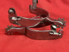 Feature 1 1/8" rowels, 1 7/8" shanks, 1" bands, and 3 1/2" heel openings. He is a good maker of bits, spurs, and jewelry. Well finshed quality pair. We pay shipping within the 48 states. We accept most forms of payment.
