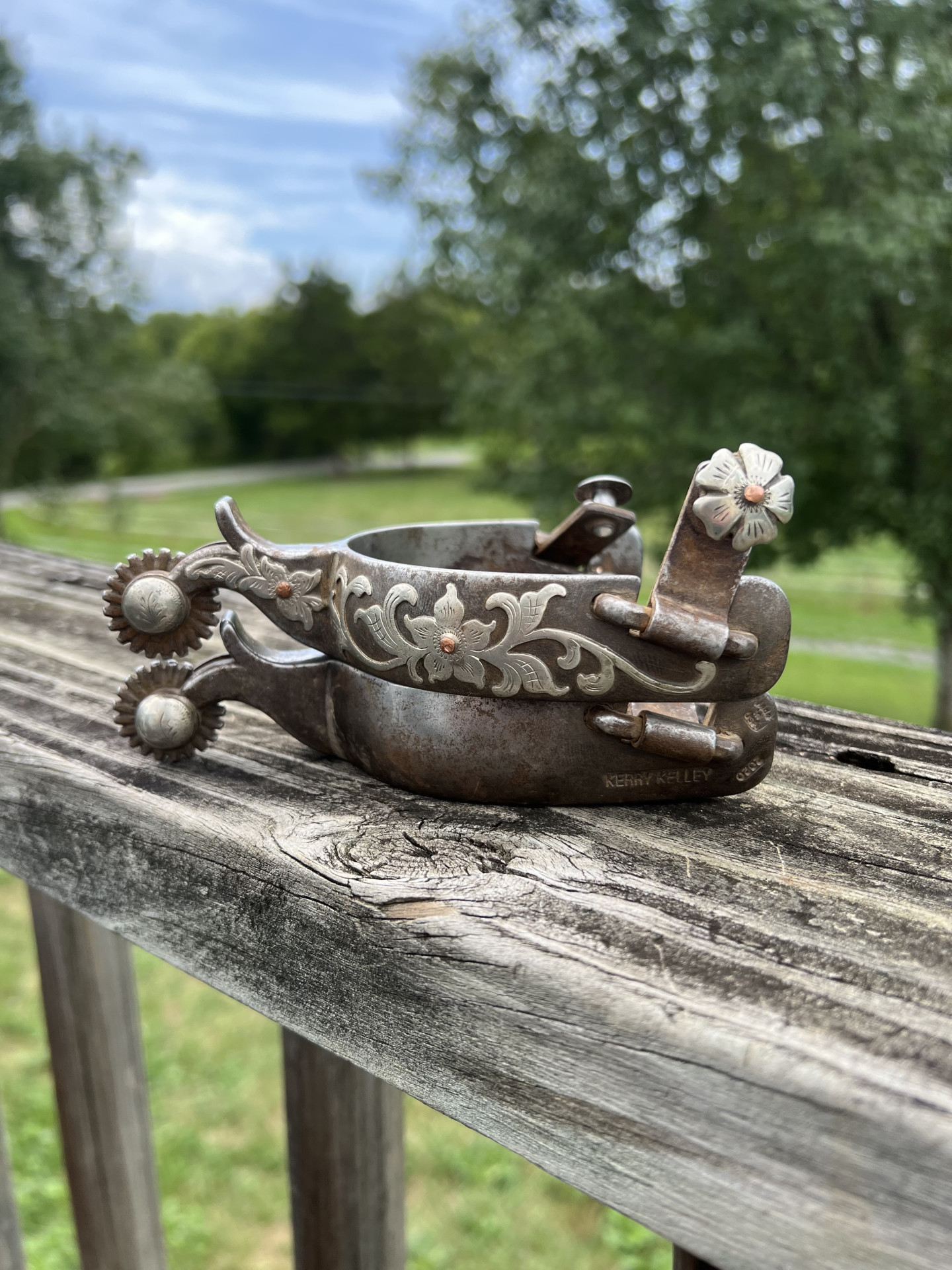 Kerry Kelley spurs. Lightly used but a good bit less money than new cost. Everything is tight and 100% sound in every way w no issues. $900 shipped in lower 48. Please text or call only. Thank u