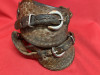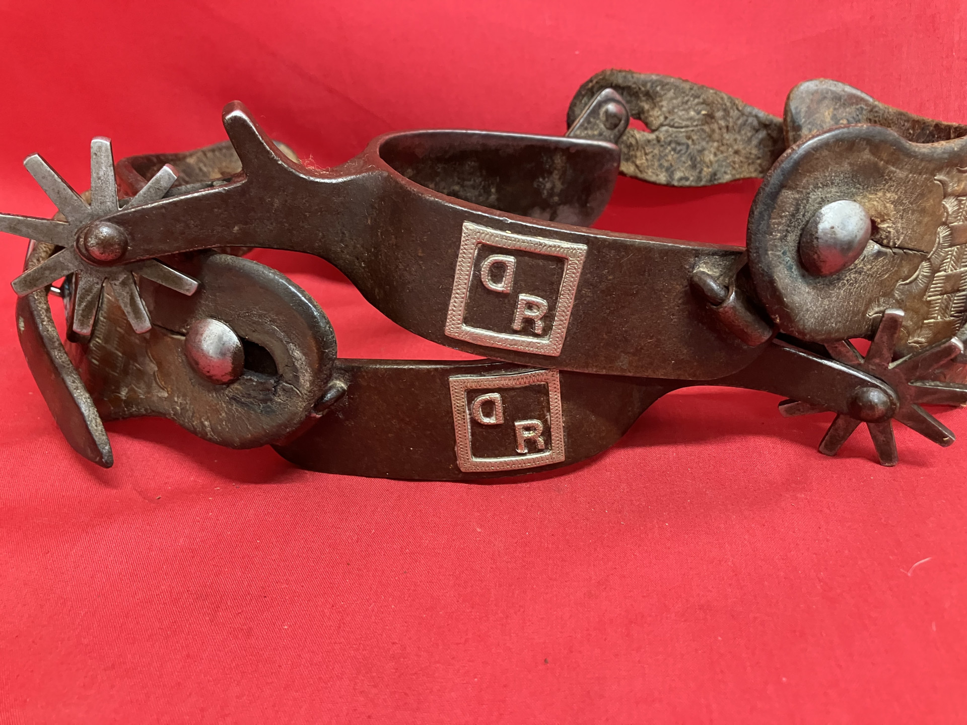 BONDS marked spurs by the late Bo Bonds with vintage leathers. Some play in the 1 5/8" 3 3/8" heel openings, 2 1/2" shanks, 1 1/4" bands. He is featured in the Martin’s book on modern makers. He made spurs for Ryon’s at one time. We pay shipping within the 48 states and accept most forms of payment.
