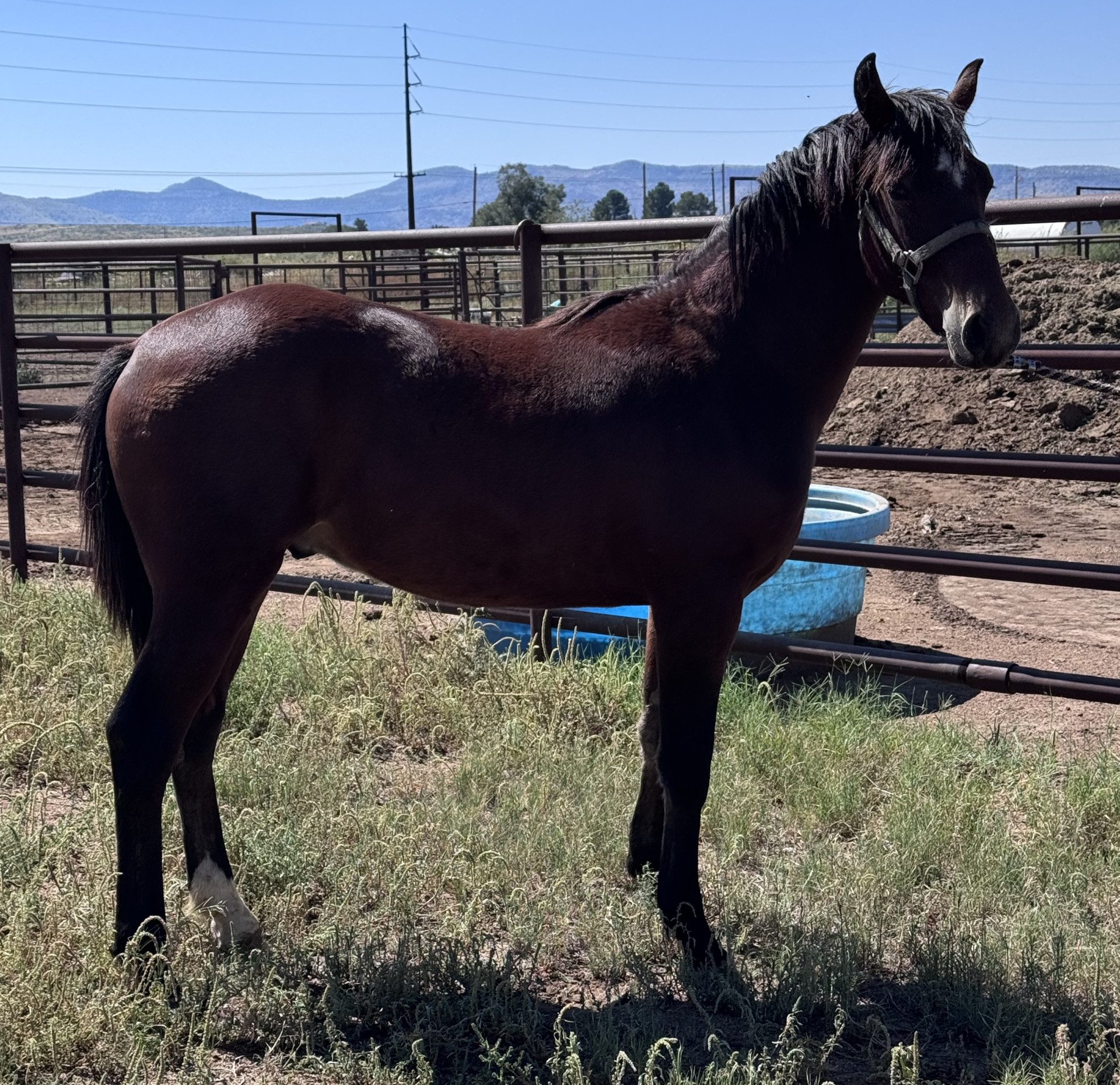 2024 bay half percheron and quarter horse gelding. Halter started. Raised outside on a rough country, West Texas ranch. Deposit required to hold the foal until they are weaned.