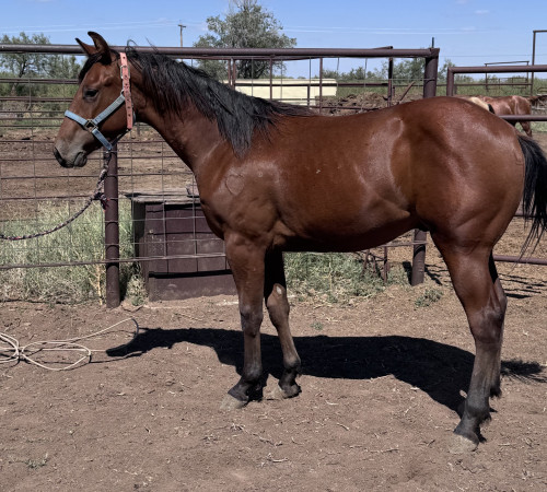 2024 bay quarter horse halter-started gelding. Raised outside on a rough country, West Texas ranch.