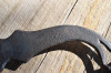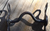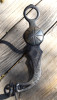 Handmade California style inlaid bit with slobber bar. Marked KW inside the cheek (Keith Welling). Has some light pitting in the steel but does not appear to have been used much, if at all. Copper inlay in the mouth. Shanks measure 8" long not including the rings, mouth is 5 1/4" wide. No damage or missing silver.