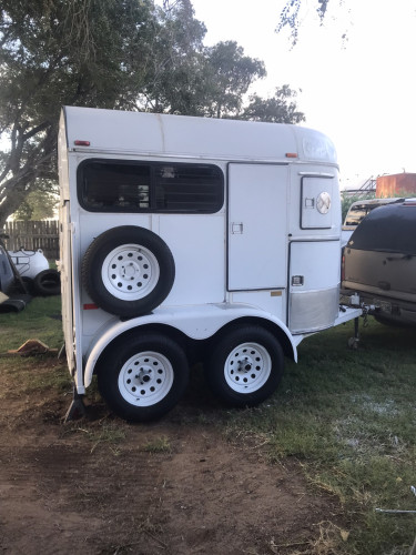 This is the nicest 2 horse trailer you will find! I am the second owner, has always been kept inside and used very little. Extra wide to fit a big horse, 6’ wide, 6’ deep and 6’7” tall. Has a roof vent and dual opening side-tie vents. Brand new treated wood floor that is fully matted with sides and back gates. Sliding, tinted side windows with screens. Safety door. New LED lights, cargo and tack lighting. Locking, carpeted tack area with a double slide-out saddle rack. 5 brand new 15” 10 ply trailer tires with 5 matching wheels. 2 inch hitch. Safety brake unit. Wheel bearings just packed and brakes are excellent. Pulls very easy even with an SUV. All original paint and no rust! Has a small roof dent where a tree limb fell on it years ago. Never been titled, only has a bill of sale. We just don’t use it any and it’s taking up barn space. No trades. $4500. Located in Ames, Okla.