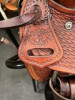 WOW. This is a dandy saddle! Sam has shown his leather talents in this beautiful rig. It is SOOO hard to find a quality rancher in a 14.5" seat. The ground seat is done beautifully, the craftmanship is top notch, and the saddle might have a handful or rides on it is all. You really can’t tell if it’s been on a horse or not. Also, will come with the breast collar in the picture.