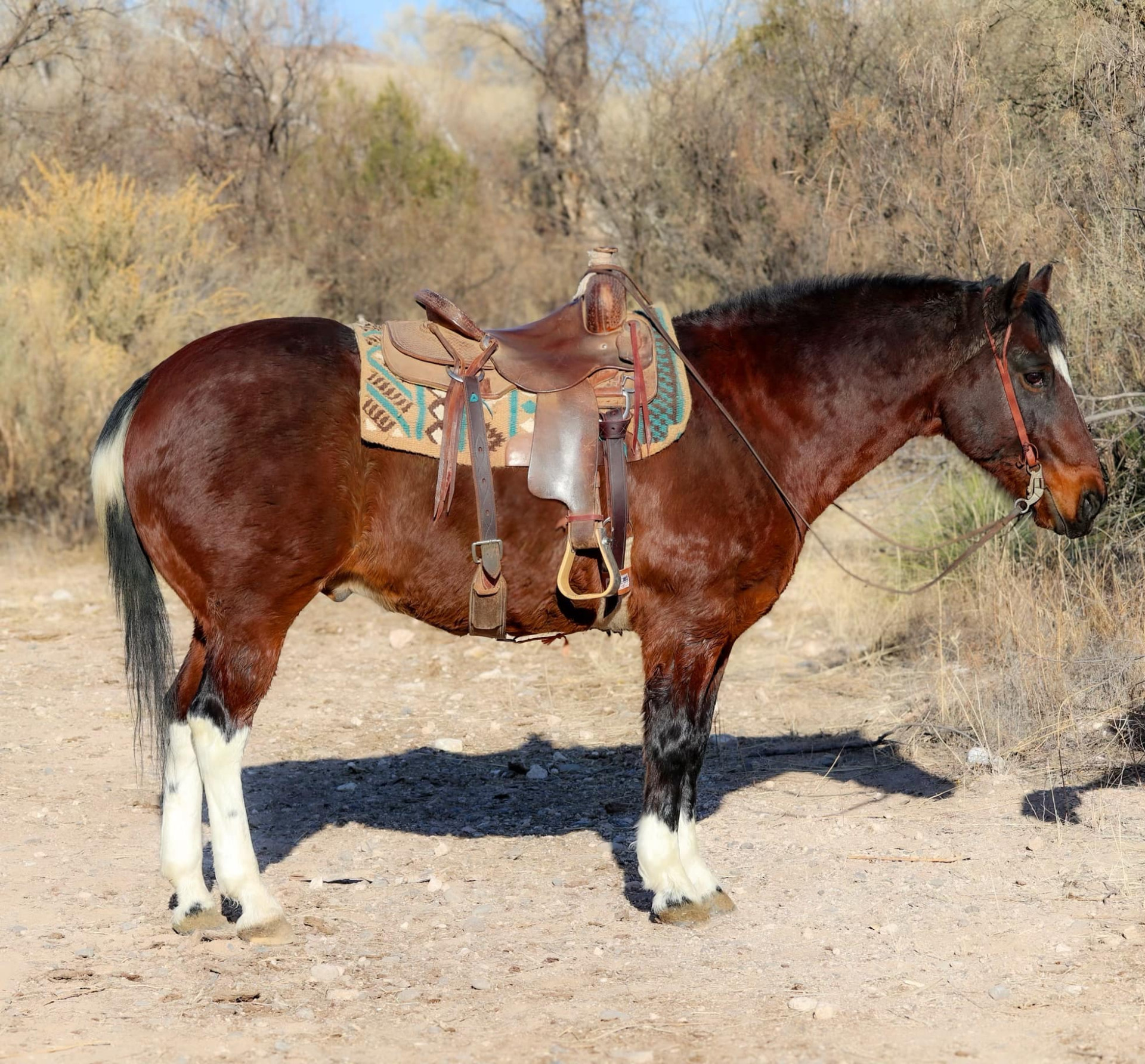 Porky is a 14 year old grade paint gelding standing 15.1hh and as stout made as a tank!! If you’re looking for an absolute gentlemen to mosey on down the trails then look no further, Porky is your man! This awesome gelding will go absolutely any direction you point him. Through any brush, rocky riverbeds, flowing rivers, up and down steep terrain, and he will be sure footed while doing so! Not only is Porky an absolute blast to trail ride, he will walk trot and lope both ways in the arena with ease! Porky is easy to catch, good to groom, saddle, bridle, and bathe. Porky will come with a clean coggins and health, as well as a lameness exam. Transport can easily be arranged anywhere in the US!!! Located in Camp Verde, AZ Contact D/C Equine Services Dallas 804-822-2233