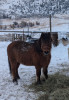 Clyde stands 11hh, is easy to groom, saddle, bridle, load and unload in the trailer, good for the farrier, and isn’t difficult to catch as long as you have a “cookie” for him (horse treat). He has been difficult to catch in the past at his other homes, but I have him coming to me and standing to be caught as long as I have a horse treat to show him and give him after putting his halter on. I have also been graining him with a little senior after rides and working with him, this has had a positive effect on his attitude during our days spent working together. He has been around small children, is super desensitized and still has a lot of go for his age. This guy would be the ideal step-up pony for a kid that knows how to plow rein and sit on a horse. He is a little heavy in the mouth so a handy kid would be best, he does rides best with a saddle and in a curb bit, but I have been riding him in a 3-piece shank. Clyde does good riding out with other ponies as well as alone. He will cross water with a bit of encouragement, does great in the mountains, and is sure footed. He loves going with other horses/ponies/minis and will keep a safe distance between him and the other horses. Walks, trots and lopes out under control. Clyde has been kept with big and small horses and has shown no interest in picking fights over hay, he likes to wait till everyone is settled and then start his meal. At the moment he is spending his days babysitting a couple miniature weanling stud colts. Willing to hold for 2 weeks and can help with transportation up to 100 miles.