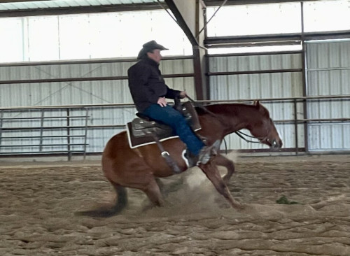 This filly has the talent and disposition to make a nice Non-Pro futurity horse. She lopes pretty circles, big stopper and easy to train. She has good feet, bone, conformation and has always been 100% sound. She is NRHA Futurity/Derby Nominated and NRBC.