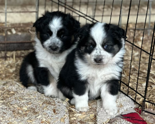 Idaho Shag x Miniature Australian Shepherd puppies. 1 female available, all are tri color. I meticulously chose this stud to compliment my idaho shag dam as I wanted a good working dog. The idaho shag breed is such a unique experience and I hand picked this stud to compliment this breed and the dam. The dam is a good companion dog with drive, athleticism, trainability, and intelligence - she is a house dog one day and go tree a raccoon the next. She will go through any obstacle you tell her- swim, jump, climb, crawl. She is truly happiest to be out working- she rides miles with my horses and she wants to take direction and is attentive to you. Limited cattle exposure due to lack of resources (cattle) but will work pretty much anything you ask her to and has the off switch to coexist when the job is done. The stud, a miniature Australian shepherd is owned by a DVM who does have cattle and acreage. He spends his time monitoring the property or checking the perimeter with his owner. He is seasoned on working cattle. On a cooler Texas morning, he enjoys hunting rabbits. When his owner is working, he goes along. He will sit in the office all day without any resistance. Both parents are top notch dogs but have an off switch, unlike your typical border collie. They are more intelligent and willing than your blue heeler and they are less of a liability too. These dogs want to mind and are intelligent, athletic, aggressive, and have an off switch. You truly will not get a better all around ranch dog than this cross. Taylor, TX, and I travel to the Houston area on Sundays.