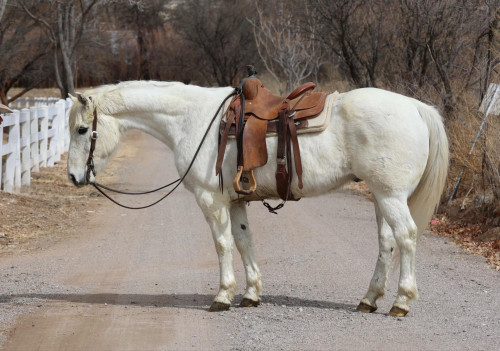 Frost is a 14 year old grade gelding standing 15.1hh. This gentle gelding is an absolute veteran around the ranch and has done absolutely every job a horse can do on a working ranch. Drug calves, loaded trucks, doctored yearlings, packed salt and fencing supplies, worked gates, rode miles and miles of fence, you name it and Frosty has done it. This well versed gelding has had a job his whole life and knows a long days work, making him very well rounded, exposed, and absolutely gentle and safe. Whether you’re going to give Frost a job, meander on down the trail, or play around the arena, Frosty would be a great fit!! You can let Frost sit for months, saddle up and get right on and he will be the exact same gentle gelding he is today, will not get fresh. Frost is not only great to ride outside, he’s a blast in the arena as well! Frost will walk trot and lope both ways with ease, as well as neck rein and has a great stop. If you’re looking for your first horse, a reliable trail mount, or an experienced ranch horse then Frosty is your guy!!! Frost is good to catch and good to groom, saddle, bridle, bath, shoe, and load! Will come with a clean coggins and health! Transport can easily be arranged anywhere in the US!!! Located in Camp Verde, AZ Contact D/C Equine Services Dallas 804-822-2233 or Natasha 928-460-2625