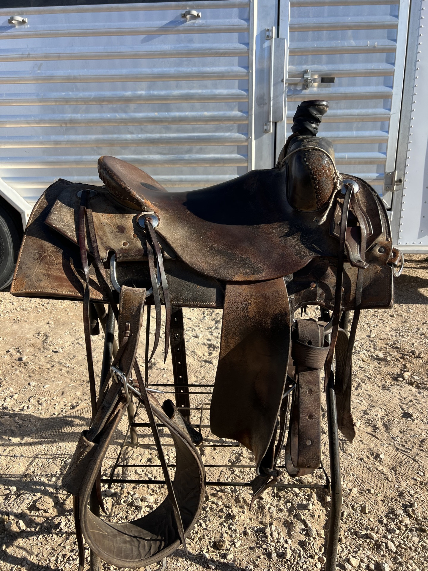Hal Evans cowboy saddle. Square skirts, 16 inch seat, 3 inch cantle, 2.5x3 inch horn. Nylon insides on the stirrup leathers, felt liner in great shape. Saddle rides nicely and sits a horse well. Call or text with any questions.