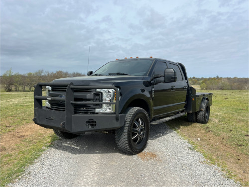 Leather Seating, Power Front Seats, Power Folding Mirrors, Remote Start, Aftermarket Wheels, Heavy Duty Replacement Front Bumper, and Norstar Skirted Flatbed with Gooseneck Ball.
