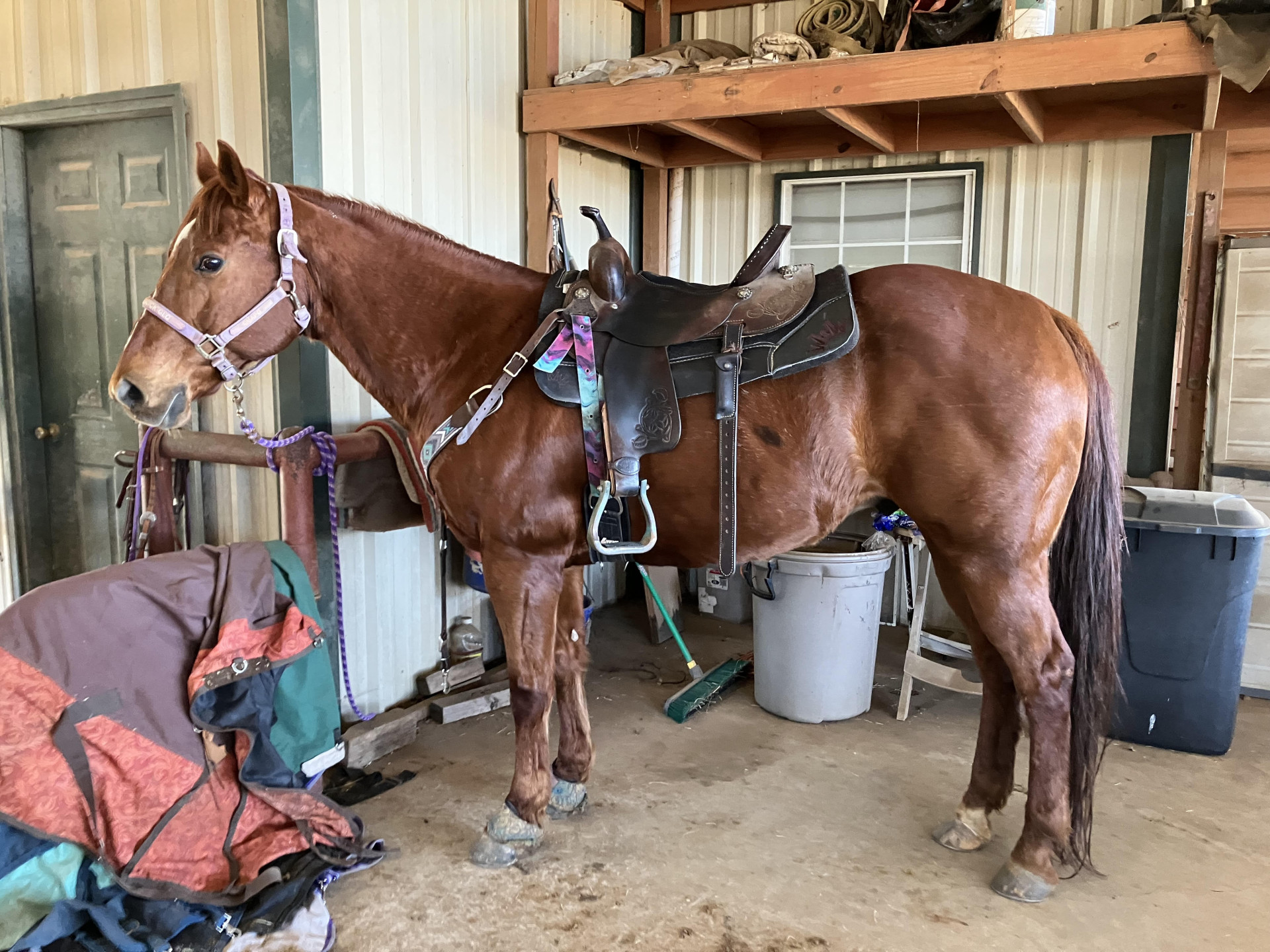 This big sorrel gelding is about 15.1 hands and stoutly built. PPE at buyer’s expense, but I have seen no reason he shouldn’t pass a PPE.
