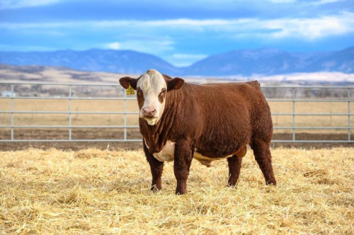 This homozygous herd bull is really something! Powerful, deep, stout, with deep dark pigment. He is one of 7098’s best and will produce both bulls and females that are exceptional to include easy calving. What a combination of eye appeal, power & numbers! Churchill Daybreak 2315K ET co-owned with 4-H Polled Herefords and Jim Hultin Helena, MT