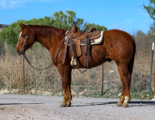 Axel is a grade 10 year old gelding standing 14.3hh. This gelding is the absolute definition of a been there done that ranch horse! Axel has seen countless miles of rough country across Arizona and New Mexico, doing absolutely every single job around the ranch, making him versatile, safe, and very very broke. Drag calves to the fire, sort in the alley, work a gate, load trucks, doctor yearlings, gather in the big country, ride miles of fence, pack salt, you name it and Axel has done it!! Axel is surefooted as can be even if you’re in the rockiest roughest country around. Absolutely so spooky and bulldoze right on through whatever you put in front of him. Thick brush, rough country, flowing waters, anything you can think of Axel will mosey right on through unphased as can be. This awesome gelding is not only great to ride outside, but just as fun in the arena! He will walk trot and lope both ways with ease, as well neck rein, side pass, and has a great stop! If you’re looking for a great gelding to go do a long days work, mosey on down the trail, or have a blast playing around in the arena, then look no further. Axel is your guy! He is easy to catch and good to groom, saddle, bridle, bathe, shoe, and load! Will come with a clean coggins and health! Located in Camp Verde, AZ. Contact D/C Equine Services Dallas 804-822-2233