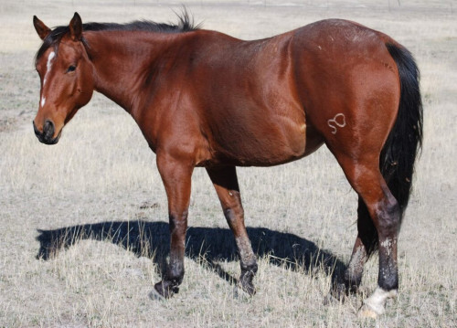 Walk, trot, lope. She has been doctored off of and used for calving, feedlot work, sorting and pairing out as well as daily ranch work. Would make a good ranch horse or broodmare.
