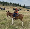Ruben is a very handsome sorrel and white paint John mule that we purchased from Jason Griffin at the Jake Clark Mule Days sale in Cody Wyoming in June of 2024. He stands 15 hands and weighs 1150 lbs. He is very well broke, has a nice easy neck rein and is very smooth. I bought him for my 68 year old wife and though she has ridden him at the ranch numerous times and on trail rides, she feels he is too tall and a little too much for her. He is very stout, athletic and can go all day every day. He can really cover the country and is plenty fast. You can sure enough get around cattle and turn em. I like riding him for gathering and working. He is gentle and easy to be around. He is easy to catch, saddle, bridle, trim, shoe, bathe, and is good with his ears. He is very handy at working gates. He has a very smooth trot and lope and a fast ground covering walk. His prior owner said they doctored yearlings on him. Ruben is a real head turner. You will be the hit of the parade or the envy at the gathering when you ride up on Ruben.