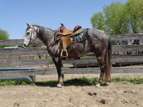 Shooter, good looking, 14.3h, Playgun and Doc O Lena Bloodlines, He is a big stopper, athletic. He has a quiet personality, good out trail riding. Done every aspect of ranch work, pasture rope and doctoring. Started team roping’ Loping the barrels nice and ready to start pushing him. Will pretty much do anything you ask of him. Good with farrier. He stands at the hitching post nice, very polite. Never offered to buck. Nice moving horse and a big stopper. Very smooth. He is a favorite to ride. Taking him Custer in May so will have more pics and video.